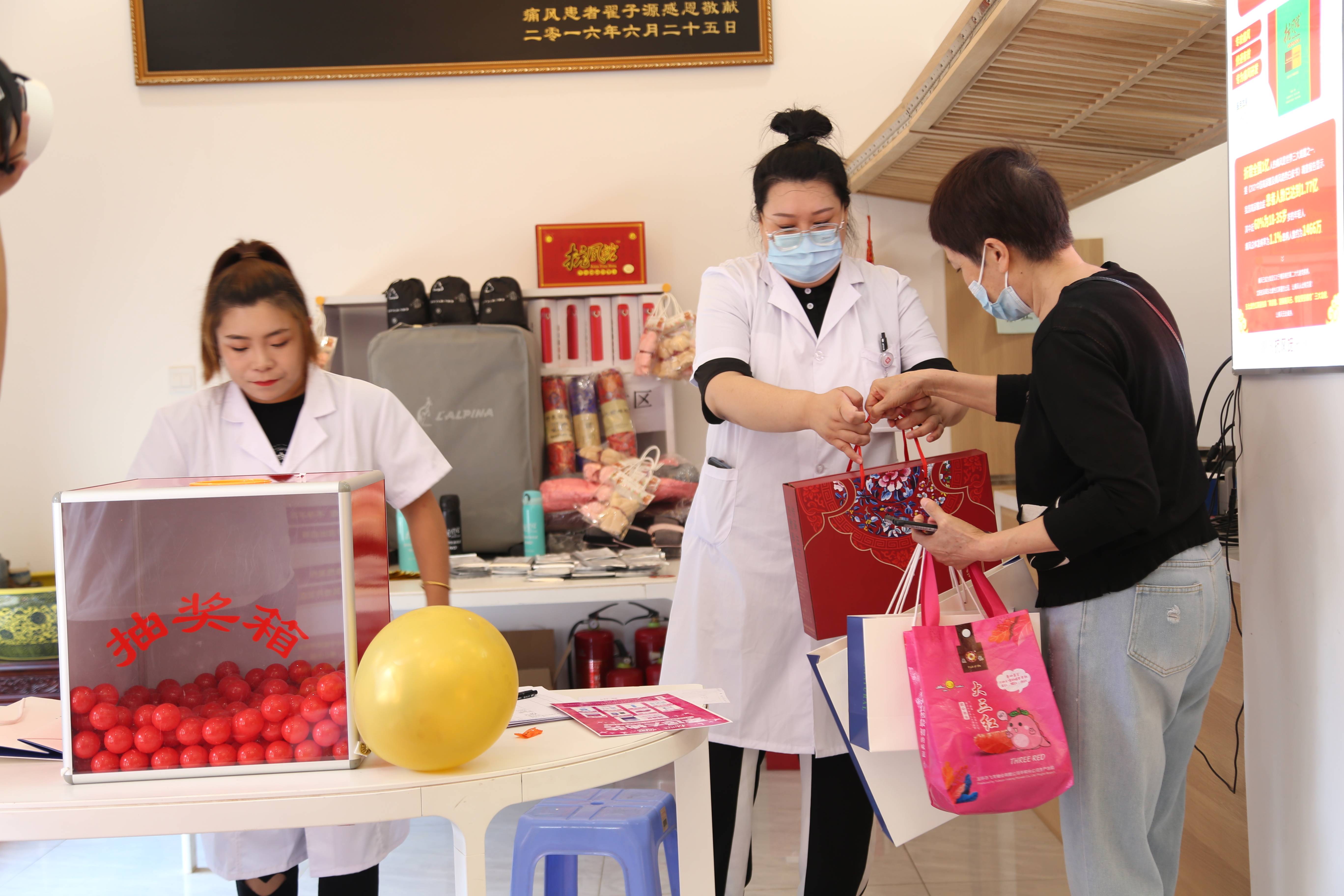 活動(dòng)現(xiàn)場有“關(guān)愛痛風(fēng)患者”的愛心組織和團(tuán)隊(duì)、志愿為痛風(fēng)患者和關(guān)注痛風(fēng)的人士,進(jìn)行公益解答和公益宣傳,現(xiàn)場還準(zhǔn)備了多種多樣的健康學(xué)習(xí)資料和驚喜禮品,本次活動(dòng)為期3天,活動(dòng)期間現(xiàn)場火爆異常,參與的人員超出預(yù)期,幸運(yùn)抽獎(jiǎng)活動(dòng)備受歡迎,豐富的獎(jiǎng)品不斷更新,現(xiàn)場歡聲笑語不斷,獲獎(jiǎng)?wù)呦矏傊橐缬谘员怼?/p>