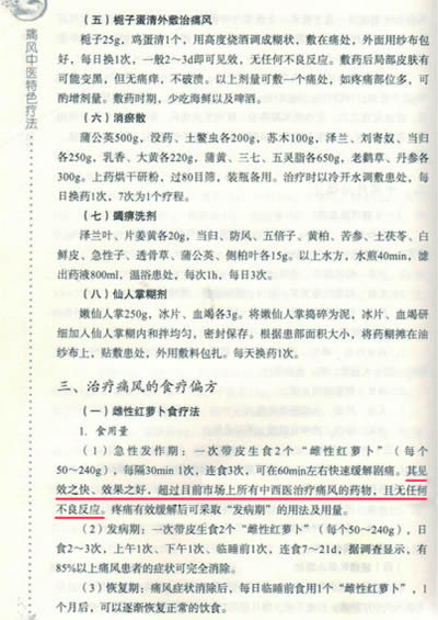 【以上為《痛風(fēng)中醫(yī)特色療法》一書中對(duì)雌性紅蘿卜的經(jīng)典論述】